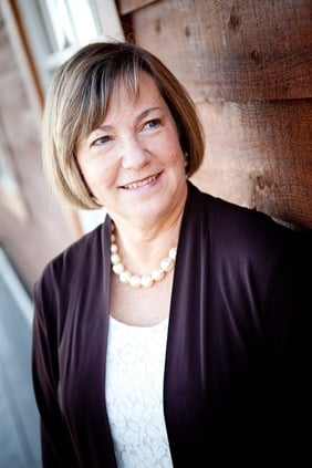 Eileen Kugler standing by wall for business portrait in downtown alexandria va
