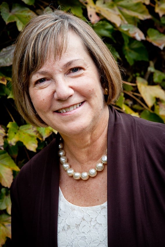 Eileen Kugler in front of foliage for business portrait in downtown alexandria va