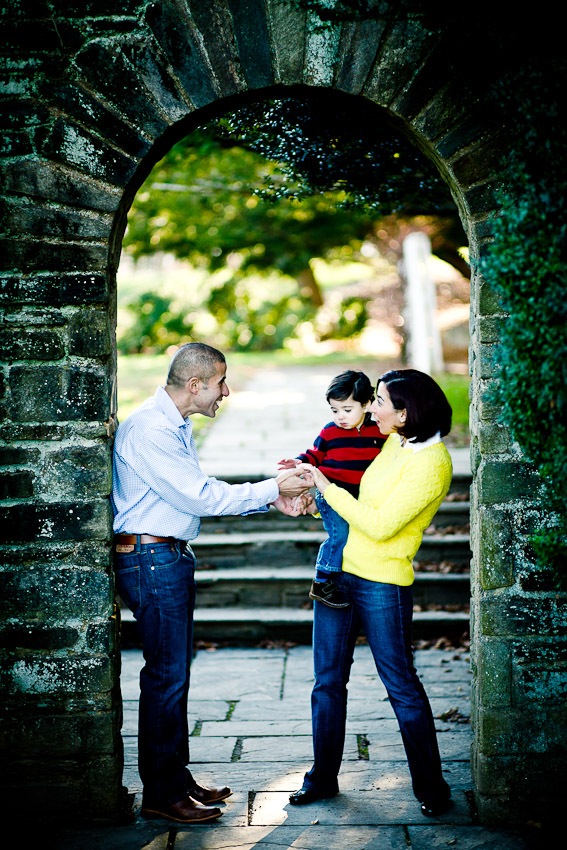 It was an unseasonably warm day in Rockville at the Glenview Mansion when I met Amr and his family for their portrait session. Exchanging our coats and shivers for sweaters and sunlight, we explored the grounds slowly, allowing the littlest member of our party to primarily lead the way. About half way through the session, our pint-sized tour guide grew concerned about the camera. Not the photographer—he had no objections there—only when the camera was actually used did he put up protest. But, by turning up the silly-factor a bit (yes, all three of us adults, and yes, it was quite a sight), we were able to coax the smiles out, giving way to beautiful family portraits.