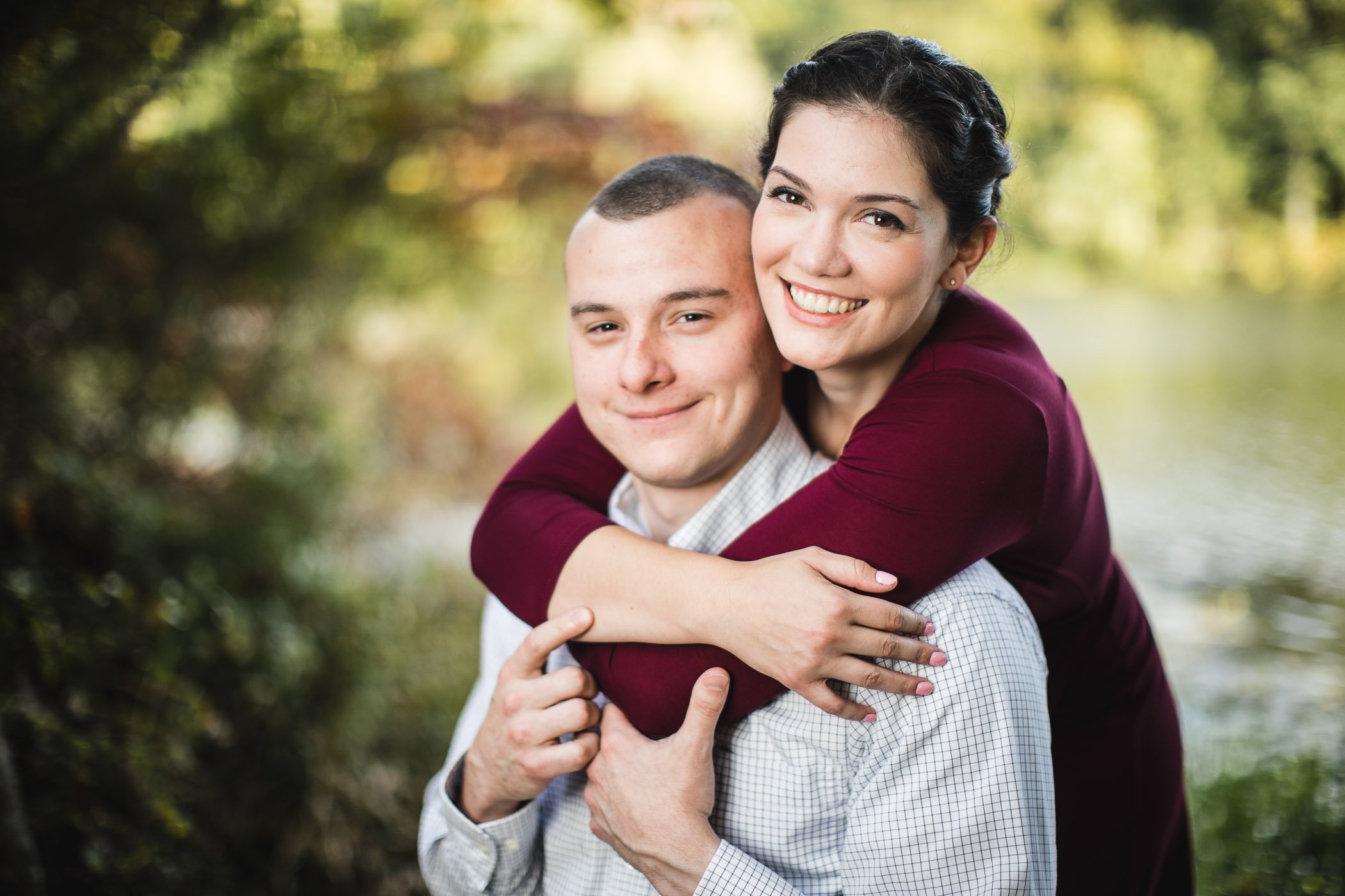A couple months ago, just before the colors on the trees started to change, William met up with this beautiful couple at Buddy Attick Lake Park in Greenbelt for an engagement session. The location was looking vibrant during this sunset session, which ended at a favorite spot in the park: the peninsula, providing a beautiful view of the lake with the sun setting behind it.