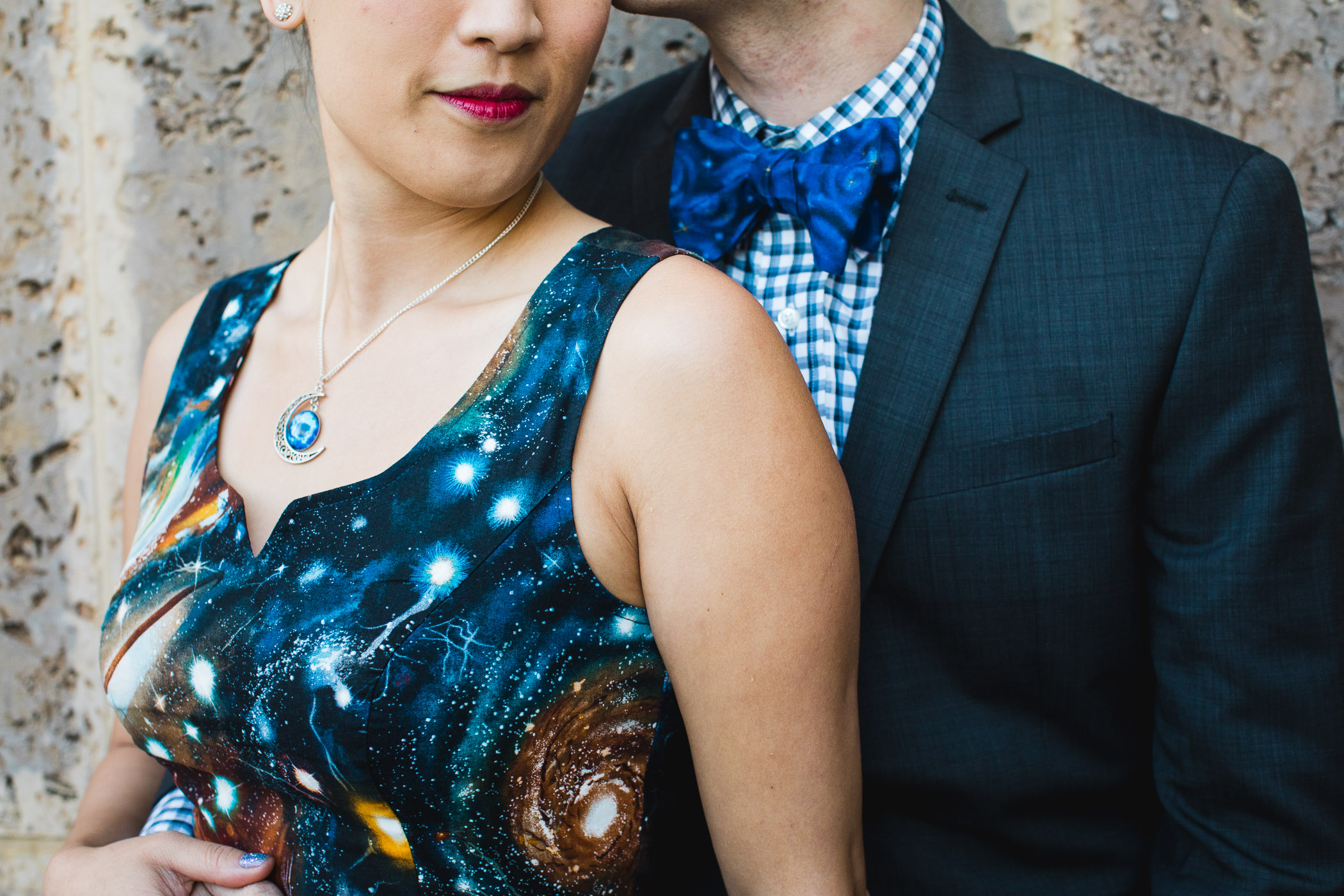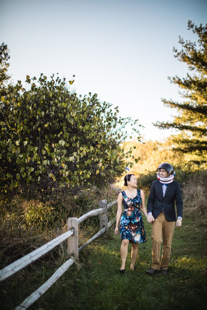 This couple has a style that is all their own, fully embracing the absurd and with a flair for quirk and showmanship. They arrived ready to mash up the ‘traditional’ modern engagement session with a space-girl outfit and a thrift store space-man helmet. We ran with it, making images from the goofy and nonsensical to the romantic and serene. Besides the outfits, most of our session was off-the-cuff, speaking even more to the lighthearted approach these two have taken toward life. It was a blast.