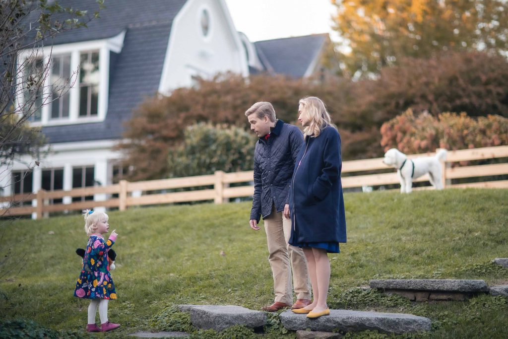 One funny moment from the session was when Sunny and Drew’s daughter was carrying a stuffed dog, and a friendly real-life neighborhood dog came wandering up, and their daughter offered the toy to the dog, and then was surprised when he actually took it and went off running. It was such a funny and unexpected moment, they all burst out laughing.