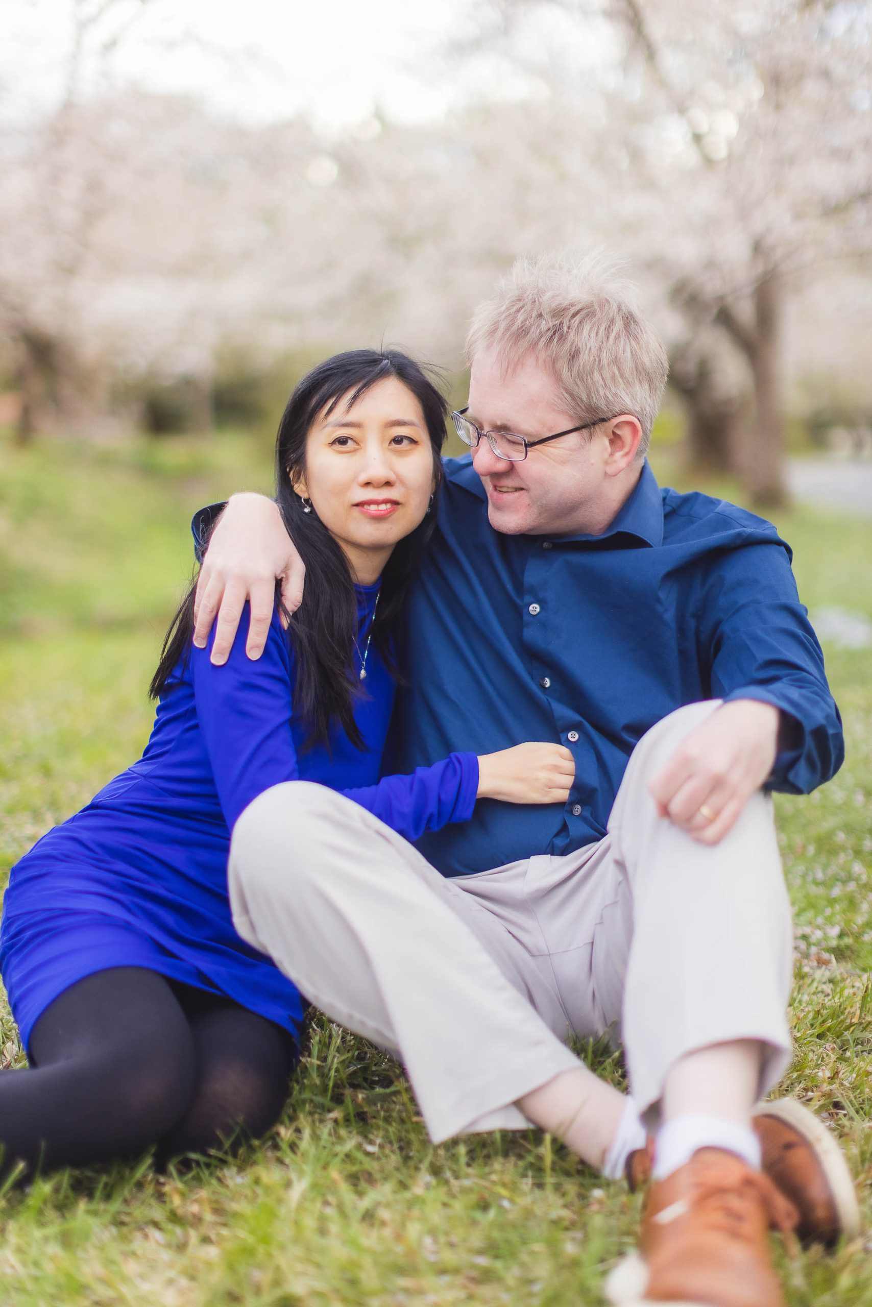 I recently had the pleasure of shooting a couples session with Sam and Trang in the beautiful cherry blossom-blanketed neighborhood of Kenwood, Maryland, near Bethesda. I’ve worked with Sam twice before on professional and personality portraits, and this time he brought along his beautiful new wife, Trang.