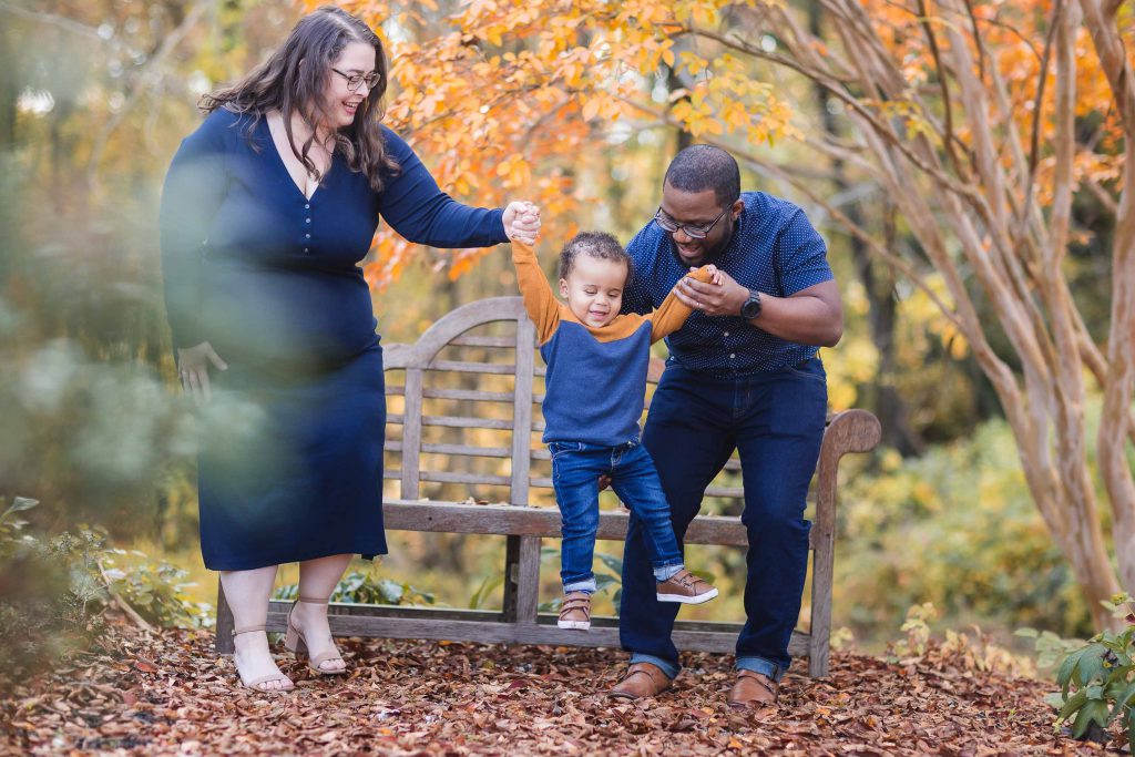 Katey and Hector’s family portrait session was a gift from a group of friends, as they hadn’t taken any photos since their son was born. Felipe spent most of their time in the terraced garden near the Blue Heron Center, which offered an excellent backdrop as the trees were turning yellow and orange. We made a special point to edit the photos to highlight these striking colors.