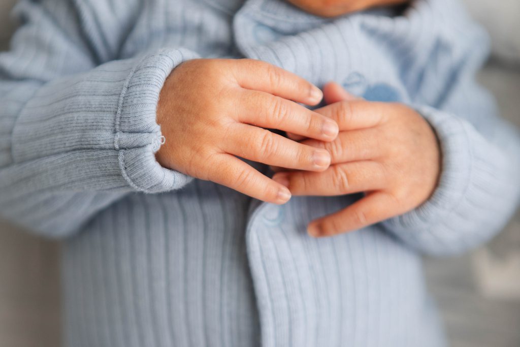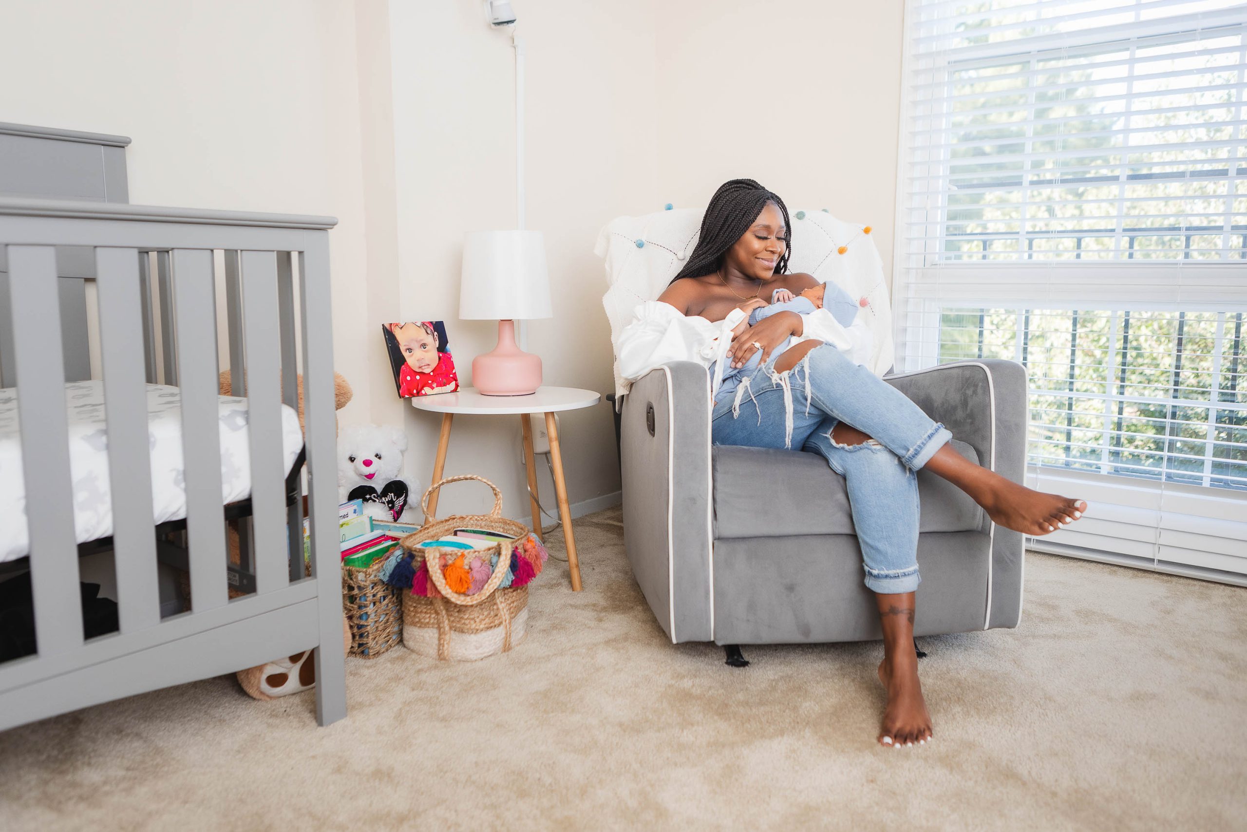 Midway through the session, as we prepared to transition to the nursery, an opportunity presented itself. While Lee-Ann changed her son’s outfit, I captured a series of intimate maternal photos, including a striking black and white image with Lee-Ann resting her hand against her newborn baby’s back. It’s moments like these that genuinely resonate with me.